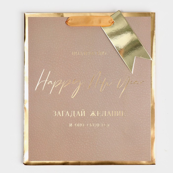 Пакет подарочный новогодний ламинированный «Загадай желание», 21.5×25×10 см