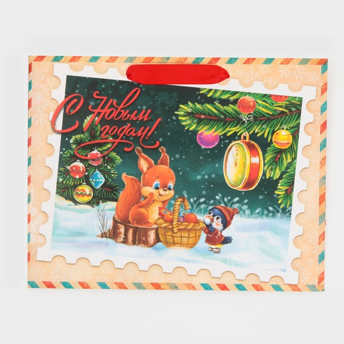Пакет подарочный новогодний ламинированный «Зимний вечер», MS 18×23×10 см