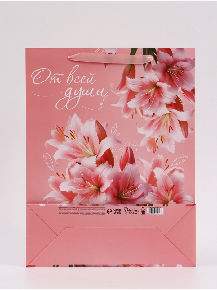 Технические характеристики Пакет подарочный «От всей души», 31×40×11.5 см