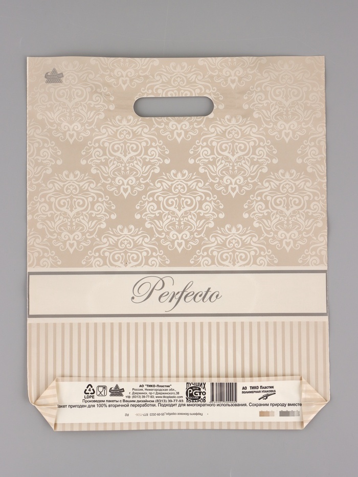 Пакет подарочный Перфекто Бежевое серебро 37 х 30 см 90 мкм