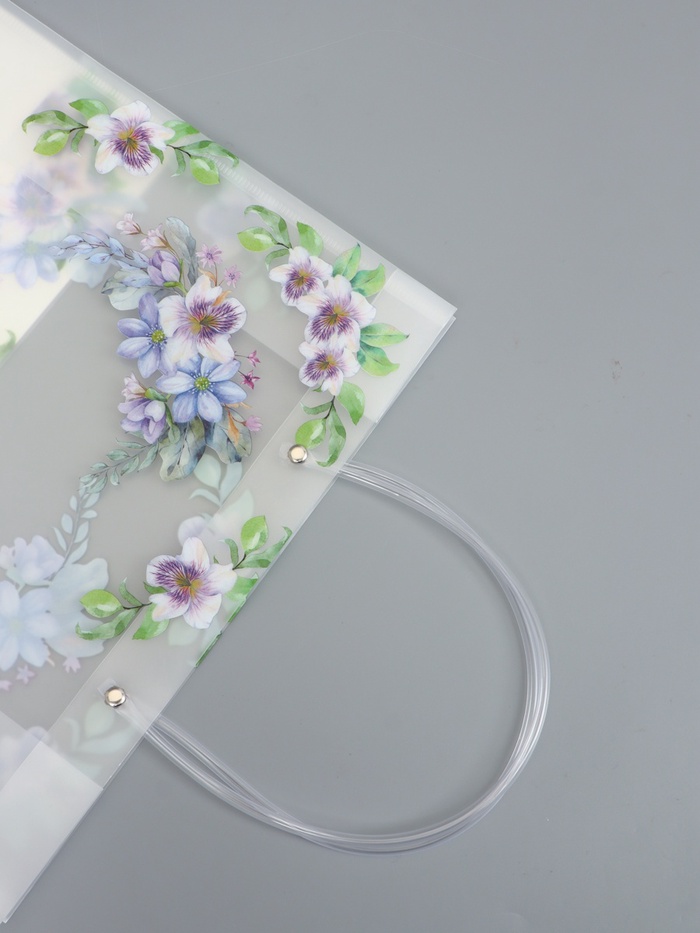 - Прозрачные стенки — подарок в центре внимания: Получатель сразу видит содержимое. Это особенно важно, если вы дарите красиво оформленную коробку, косметику, игрушку или текстиль. Прозрачность добавляет лёгкости, а цветы на пакете работают как праздничная рамка.