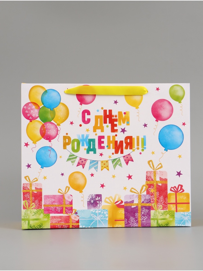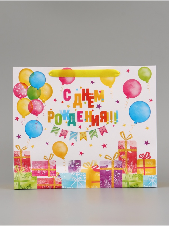 Пакет подарочный «С Днём рождения. Подарки», 30×25.5×9 см