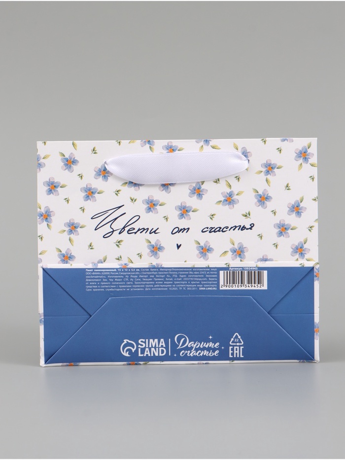 Пакет подарочный «Цвети от счастья», 15×12×5.5 см
