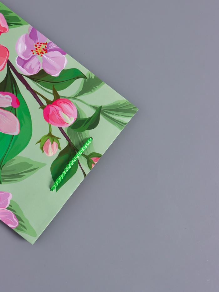 Пакет подарочный ламинированный «Весеннее признание», травяной, 18×22.3×10 см