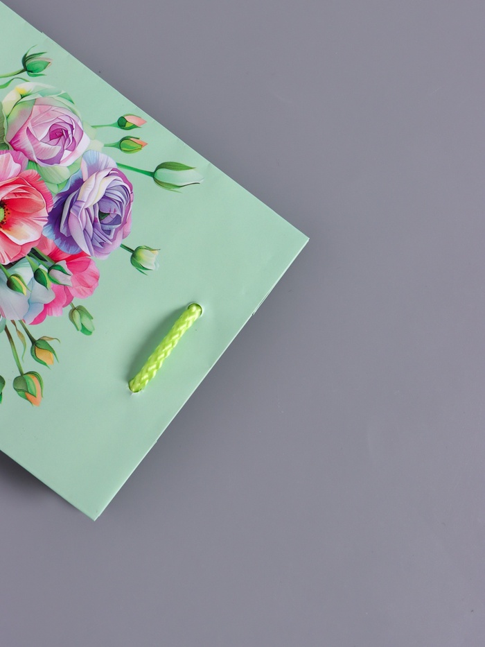 Пакет подарочный ламинированный «Весенний букет», мятный, 11.5×14.5×6.5 см