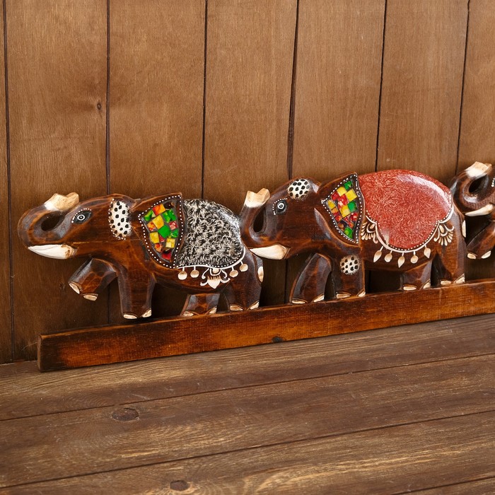 Панно «Семья слонов», 100×1.5×18 см, дерево, МИКС