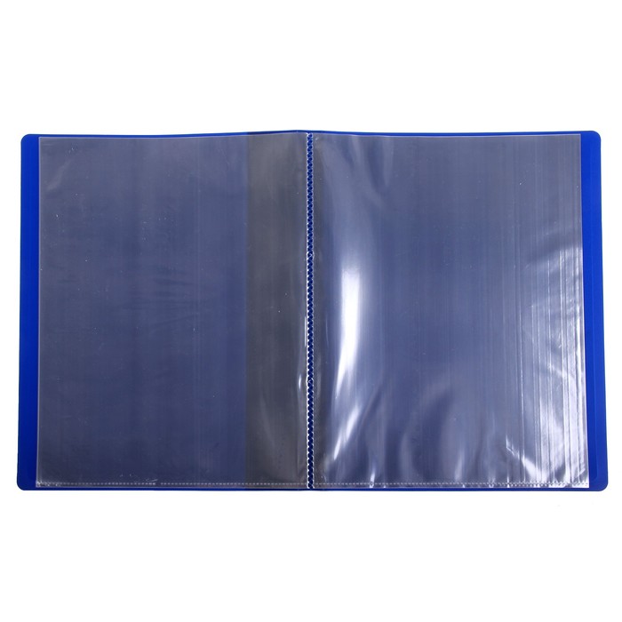Папка А4, 40 прозрачных вкладышей, 650 мкм, торцевой карман с бумажной вставкой, синяя