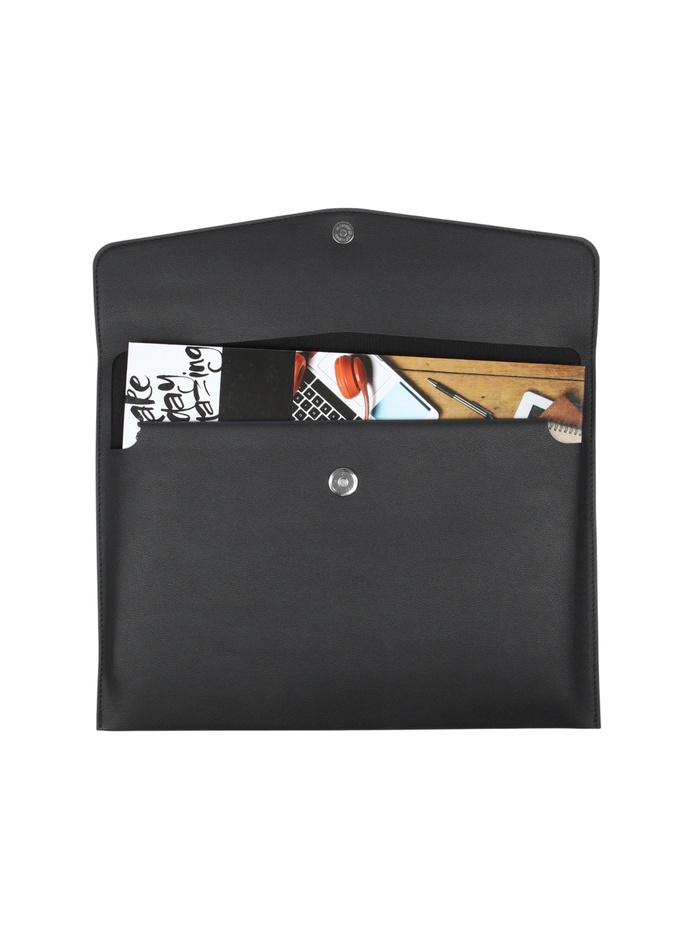 Папка-конверт на кнопке, формат А4, кожзам, чёрная