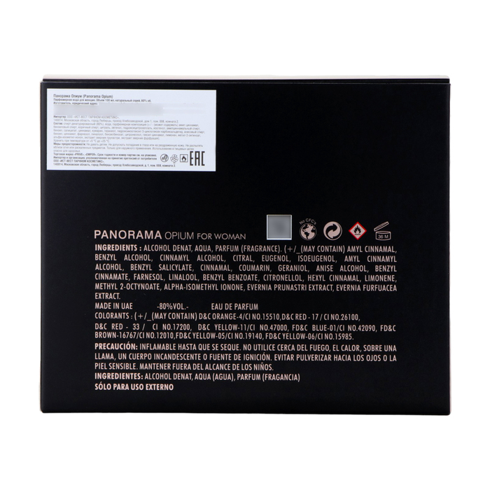 Парфюмерная вода женская Panorama Opium (по мотивам Yves Saint Laurent Black Opium), 100 мл