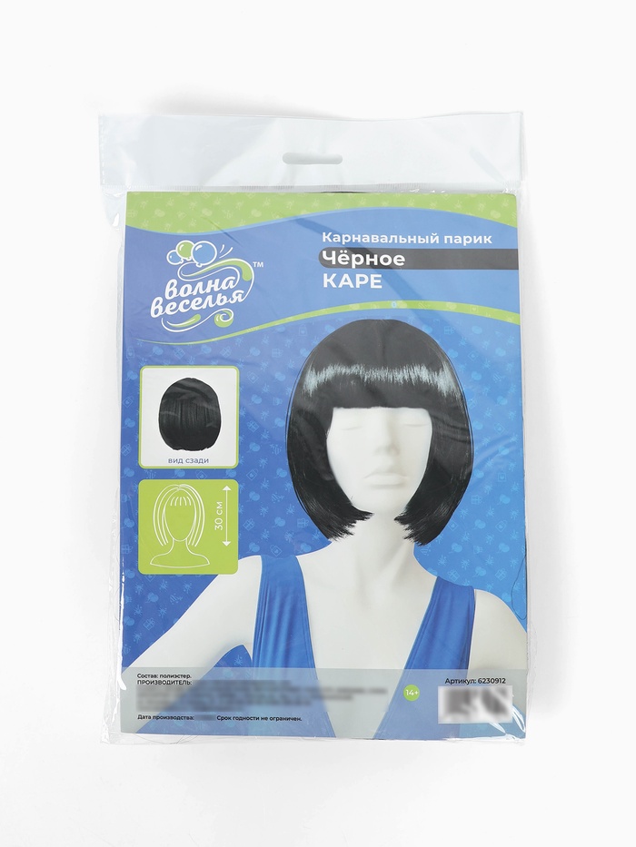 Технические характеристики Парик карнавальный «Каре» черный, 1 шт. 110 г