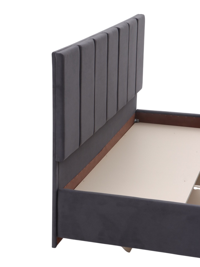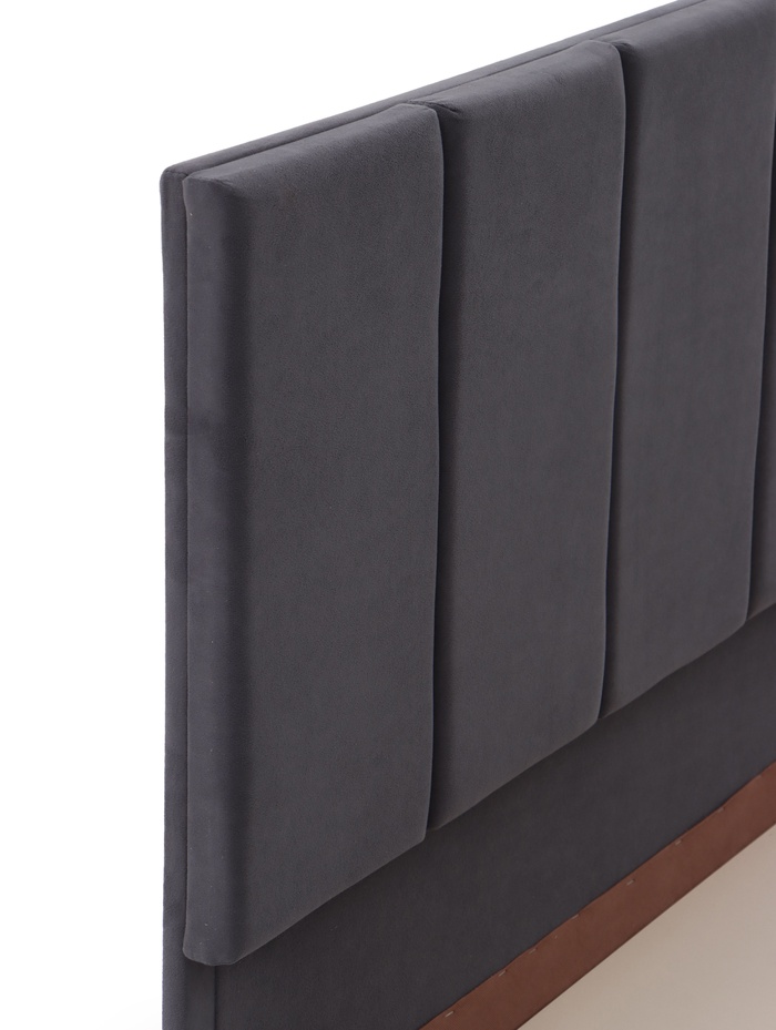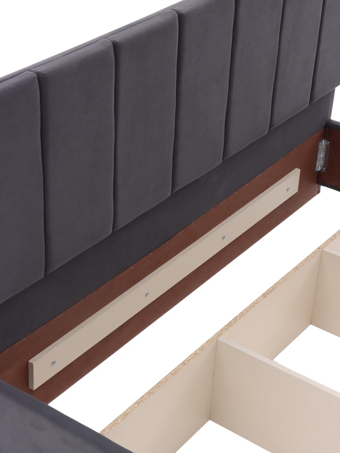 - Мягкое изголовье из велюра со стяжкой: обеспечивает комфортную опору для спины при чтении или отдыхе и добавляет интерьеру уюта.