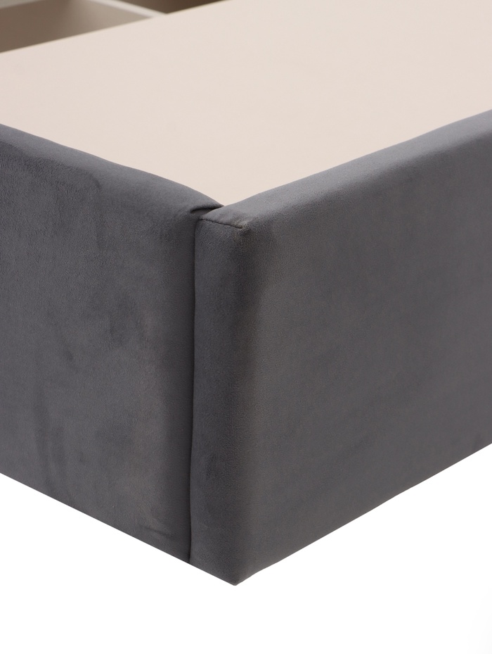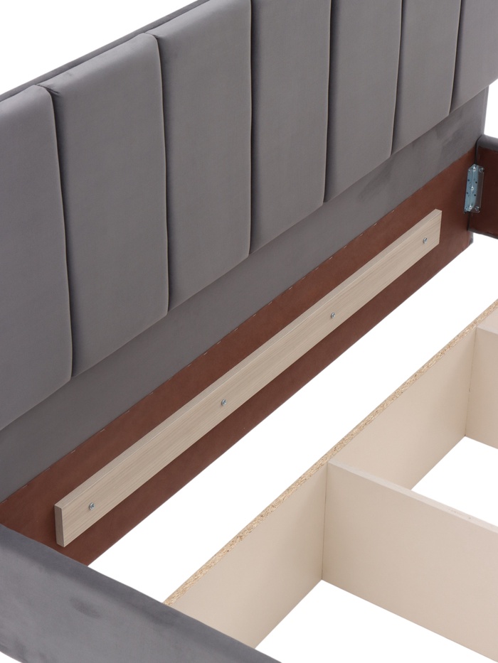 - Мягкое изголовье из велюра со стяжкой: обеспечивает комфортную опору для спины при чтении или отдыхе и добавляет интерьеру уюта.