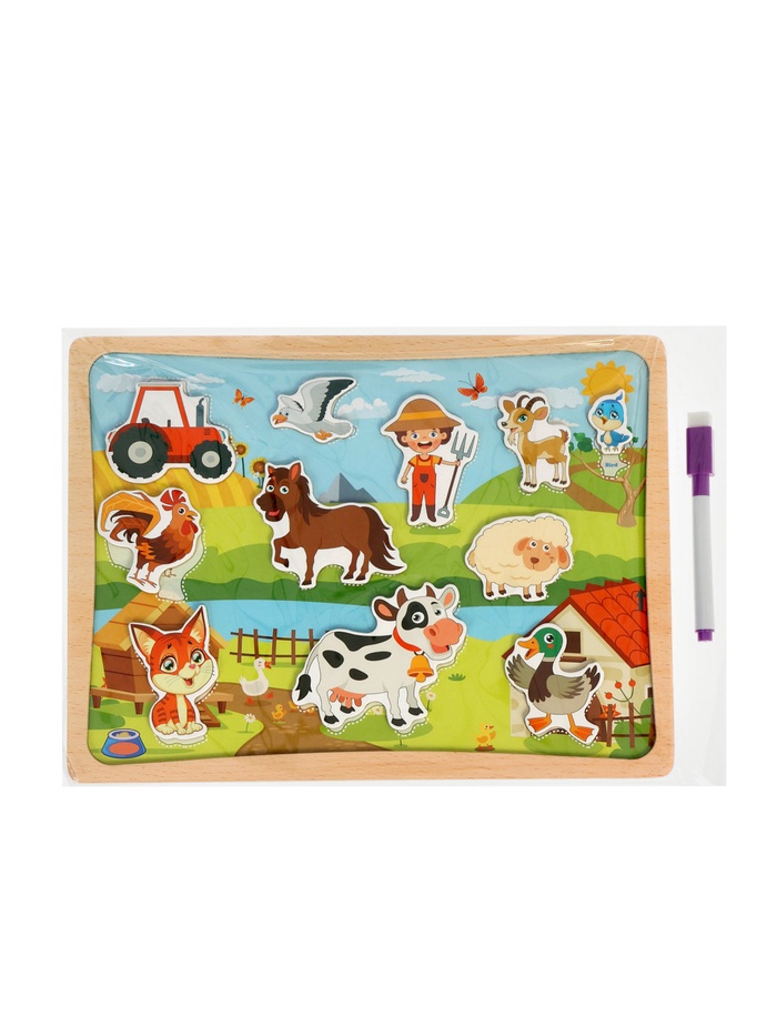 Двусторонний планшет «Ферма», маркер для рисования, липучки, пазлы