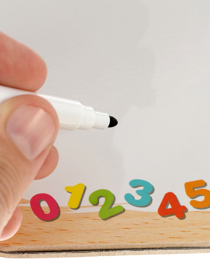 - Развивает мелкую моторику через работу с маркером и перестановку фигурок на липучках.