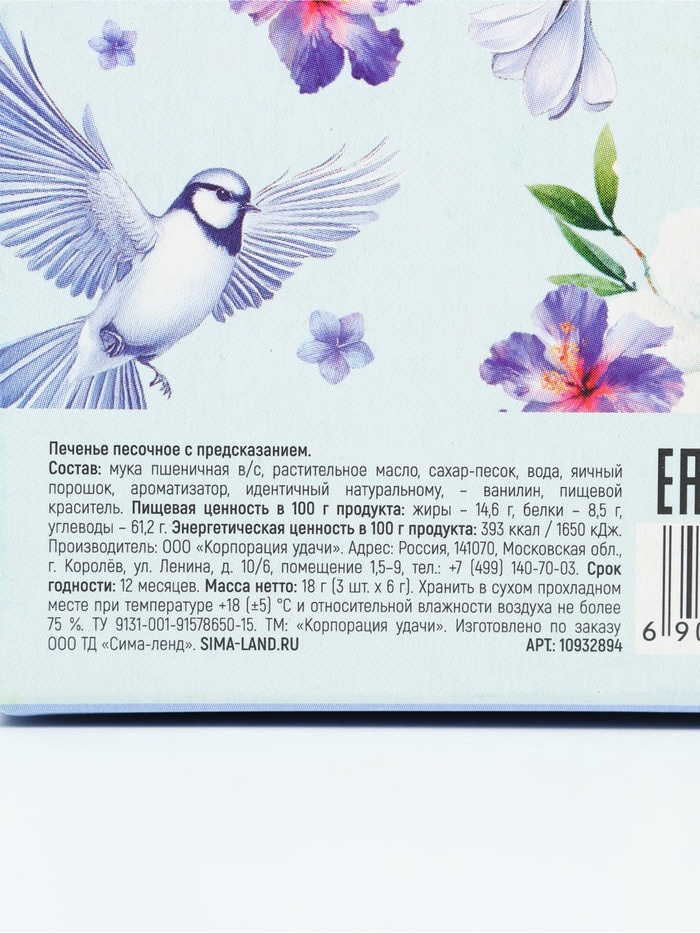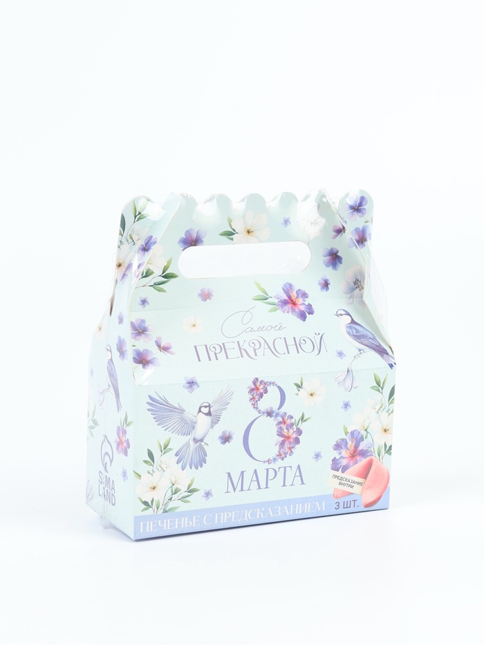 Печенье с предсказаниями «8 марта с птичками», в формовой коробке, 3 шт