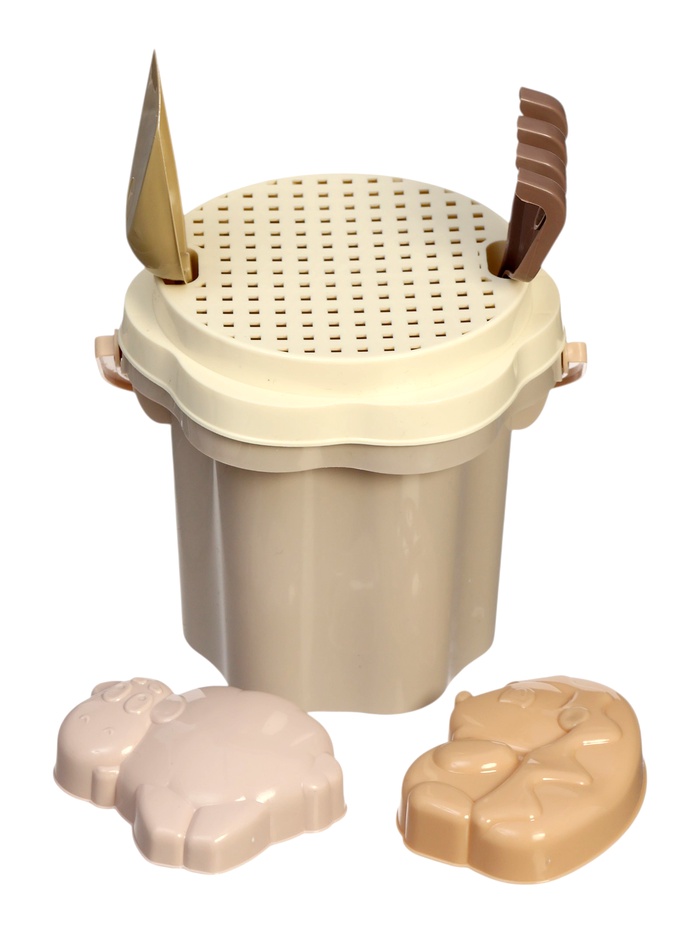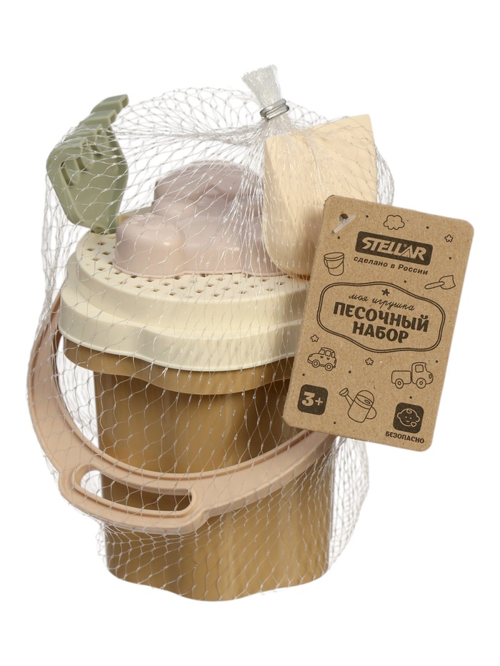 Песочный набор №174 «Зефир» — нежный и стильный комплект для игр в песочнице, на пляже или на даче. Ведро в форме цветка объёмом 0,3 л удобно помещается в детской руке, а дополнительные аксессуары позволяют создавать куличики, фигурки и целые песочные истории. Пастельные оттенки делают набор особенно привлекательным и выделяют его среди классических ярких моделей.