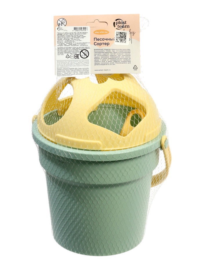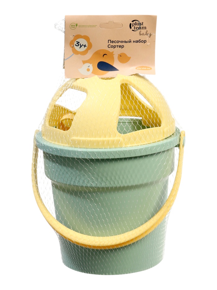 Песочный набор-сортер «Поиграй со мной», 8 предметов (ведерко, сортер, совочек, 5 формочек), эвкалиптовые