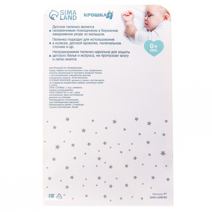 Используйте подкладную клеёнку во время пеленания или сна, если на младенца не надет подгузник. Изделие подойдёт для детской кроватки или коляски. Применяйте его, чтобы защитить матрасик от намокания.