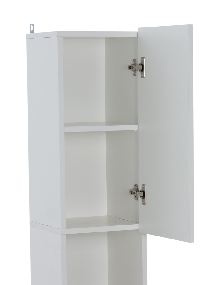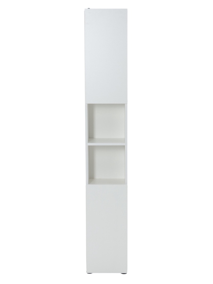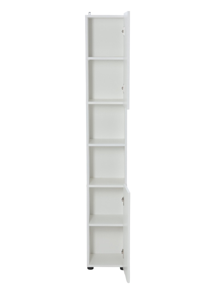 Узкий шкаф-пенал для хранения вещей в жилых помещениях. Подходит для организации пространства в комнатах с ограниченной площадью, сочетая закрытые отделения и открытые полки для быстрого доступа к предметам.