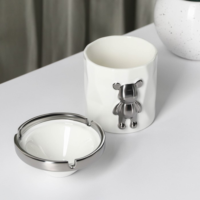 Пепельница керамическая «Стильный мишка», 9.7×10.3 см, цвет белый