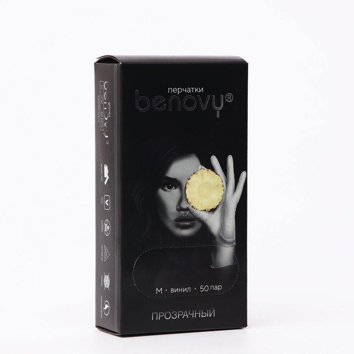 Перчатки виниловые, размер M, 50 пар, прозрачные