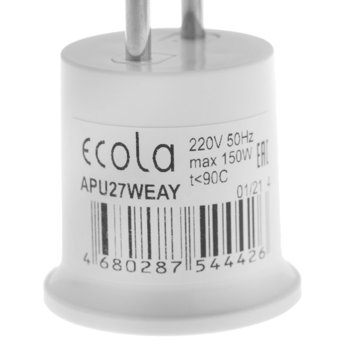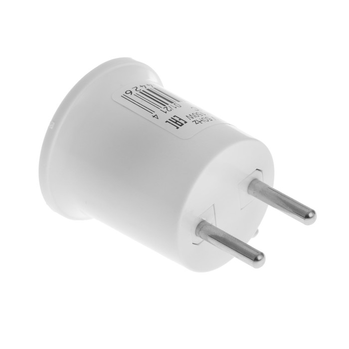 Переходник Ecola, вилка-патрон, Е27, 40 х 55 мм, белый