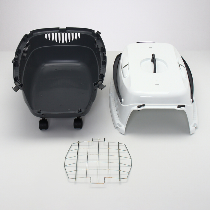 Переноска для животных на колёсах, до 15 кг "Пижон" 58 х 41 х 36см, бело-серая