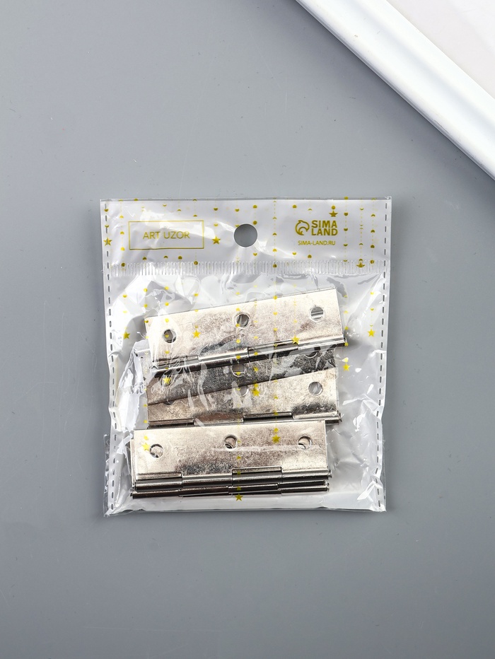 Петля для шкатулки металл с прямыми углами серебро набор 6 шт 3,7х6,7 см