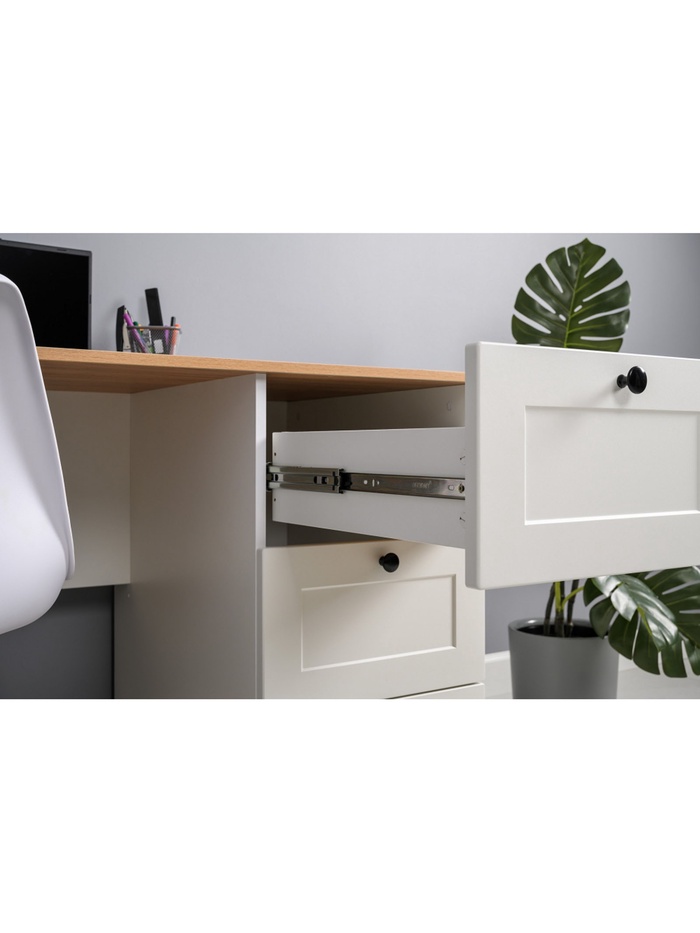- Фурнитура: шариковые направляющие обеспечивают плавное выдвижение ящиков.