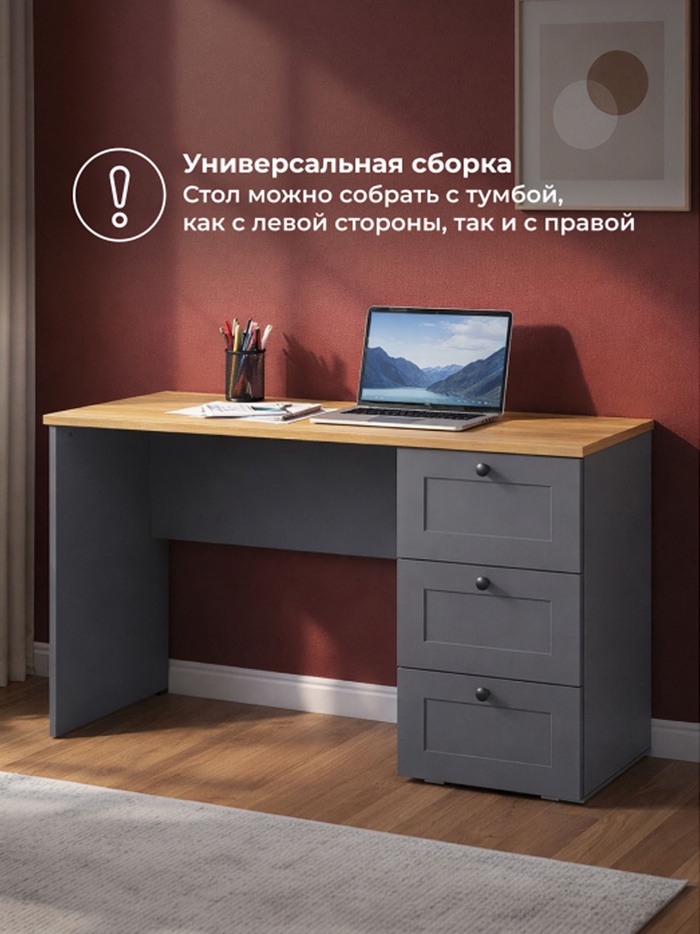 Стол письменный «Опра», 1200×660×754 мм, цвет серый графит/дуб золотой крафт