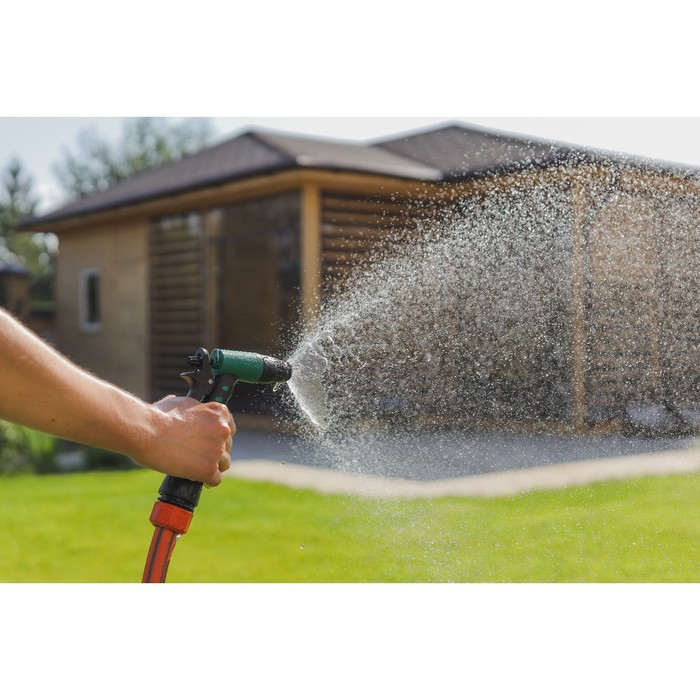 Пистолет-распылитель создан специально для ручного полива растений вашего сада и загородного участка. Напор воды можно изменять при помощи регулировочного винта на корпусе. Также вы можете изменять тип струи благодаря удобному регулятору интенсивность полива варьируется от «легкого летнего дождя» до мощной струи.