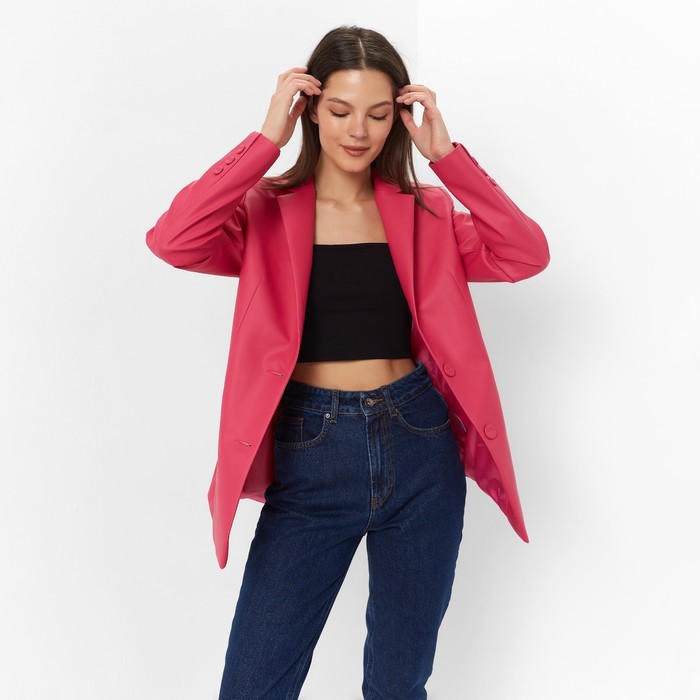 Пиджак женский из экокожи MINAKU: Eco leather, цвет фуксия, размер 42