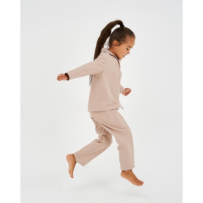 Пижама детская из фланели (рубашка, брюки) KAFTAN «Сердечки», рост 122-128, бежевый