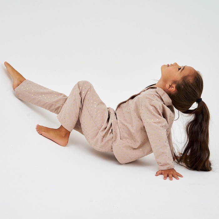 Технические характеристики Пижама детская из фланели (рубашка, брюки) KAFTAN «Сердечки», рост 122-128, бежевый