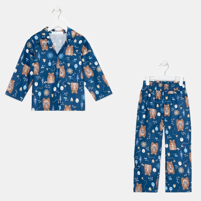 Пижама детская (рубашка, брюки) KAFTAN "Мишки", р. 122-128, синий