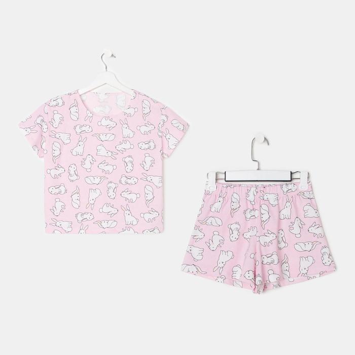 Пижама женская (футболка, шорты) KAFTAN «Зайчики», размер 48-50