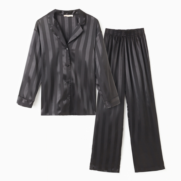 Технические характеристики Пижама женская (рубашка, брюки) KAFTAN «Полоска», чёрная, размер 52-54