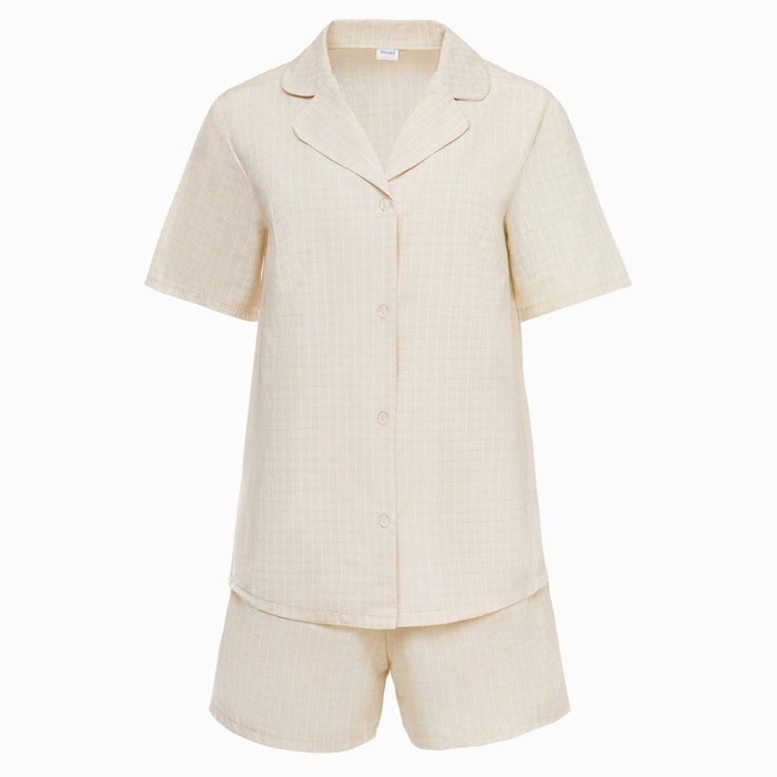 Пижама женская (рубашка, шорты) MINAKU: Home collection, бежевая, размер 50