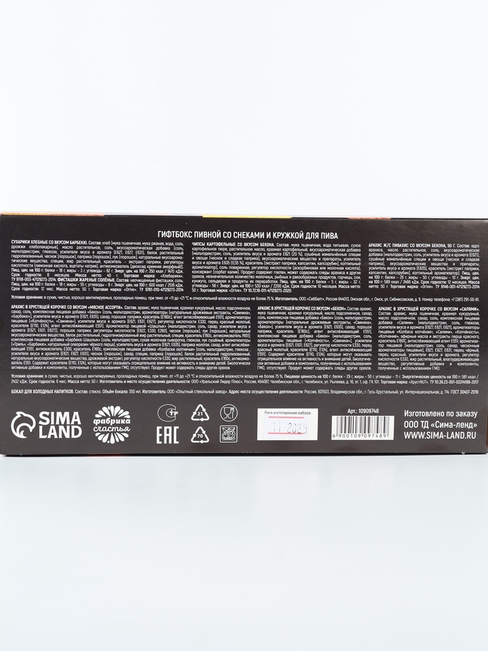 Технические характеристики Подарочный набор «Босс Чила»: снеки и пивная кружка