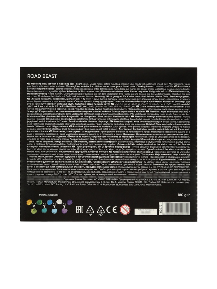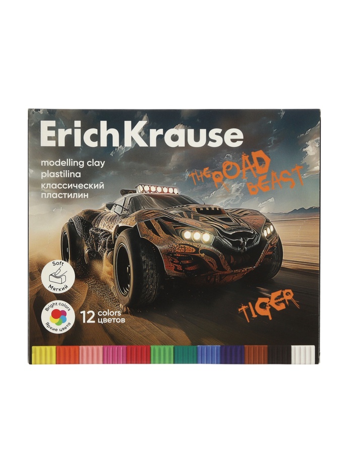 Пластилин 12 цветов ErichKrause Road Beast, со стеком, 180 г