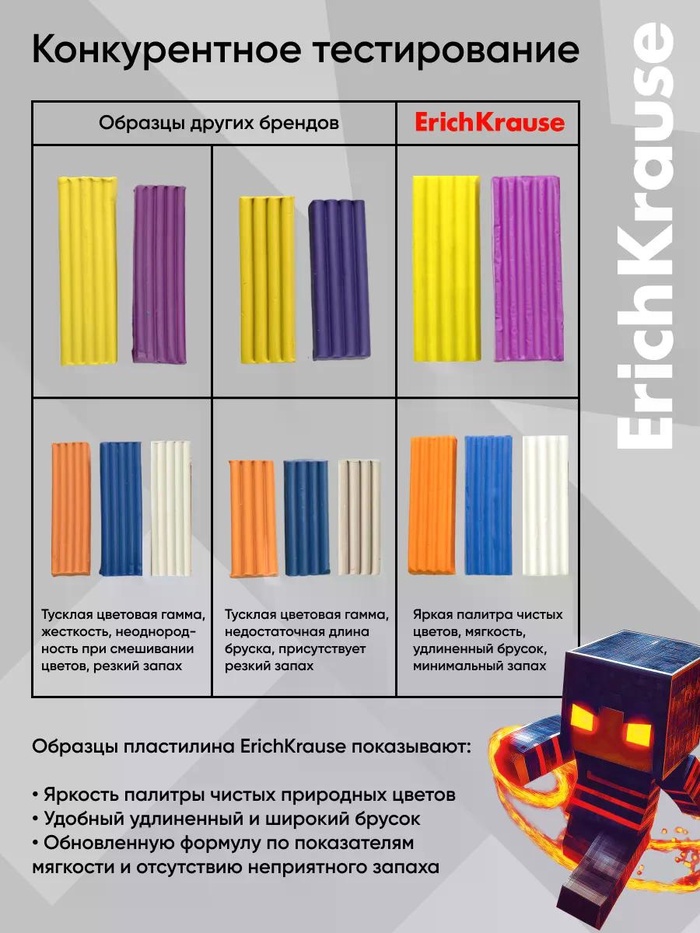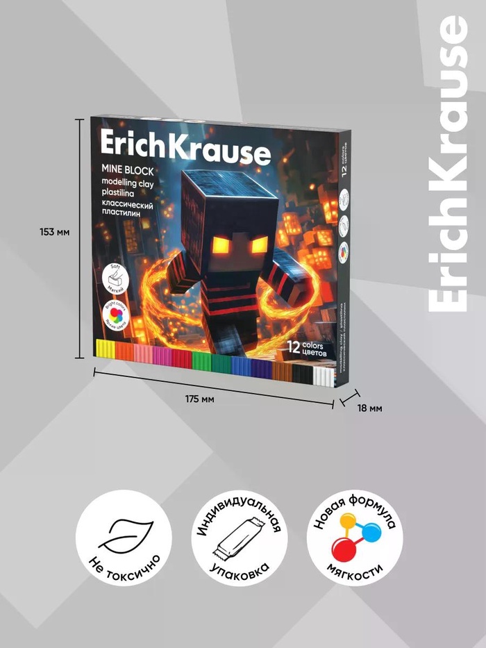 Пластилин 12цв ErichKrause "Mine Block", со стеком
