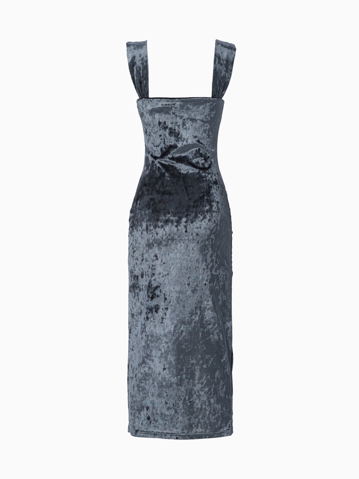 Платье миди женское бархатное MINAKU, размер 42, серо-голубое