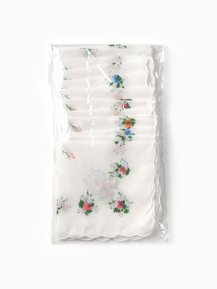 Женские носовые платки «Полянка», 30×30 см, набор 12 шт., полиэстер — это практичный и свежий аксессуар для повседневного использования. Набор одноразовых платков с цветочным принтом подходит для сумочки, дома или поездки — гигиеничное решение для тех, кто ценит порядок, уют и лёгкость в мелочах.