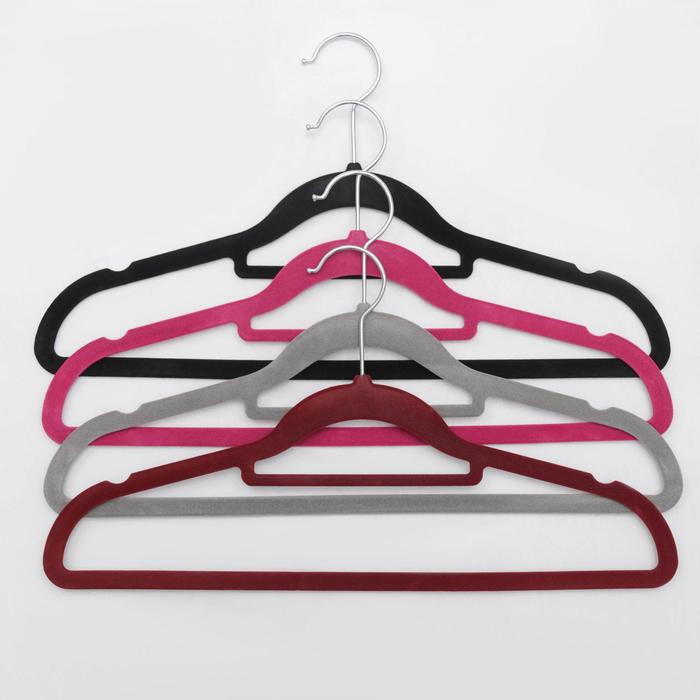 Плечики для одежды «Бархат», размер 44-46, флокированное покрытие, цвет МИКС