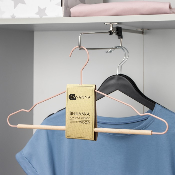 Плечики для одежды SAVANNA Wood, 41.5×22.5×1 см, розовые