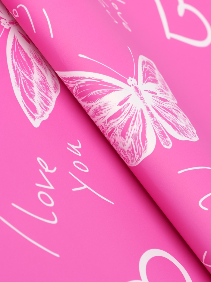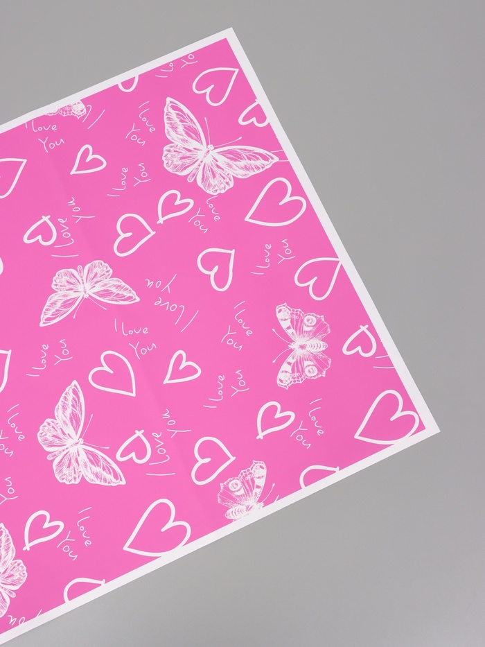 Плёнка для цветов, «Бабочки и сердца», фуксия, 57×57 см