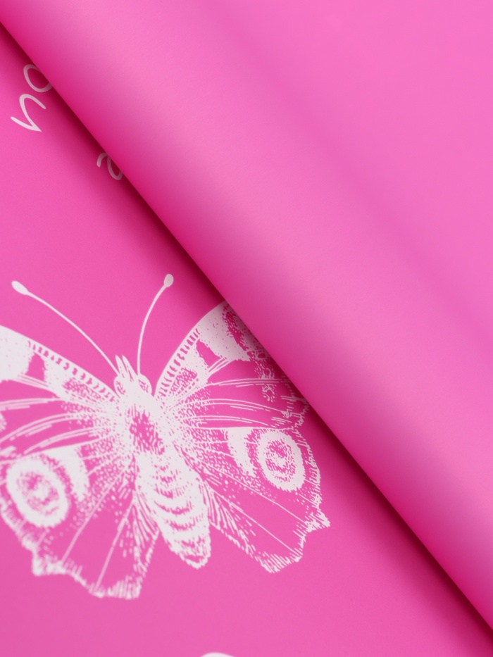 Лёгкость чувств и полёт фантазии! Флористическая пленка «Бабочки и сердца» в цвете фуксия 57×57 см — это упаковка, где романтика встречается с изяществом. Яркий розовый фон и парящий белый узор создают живой, динамичный и невероятно женственный образ.