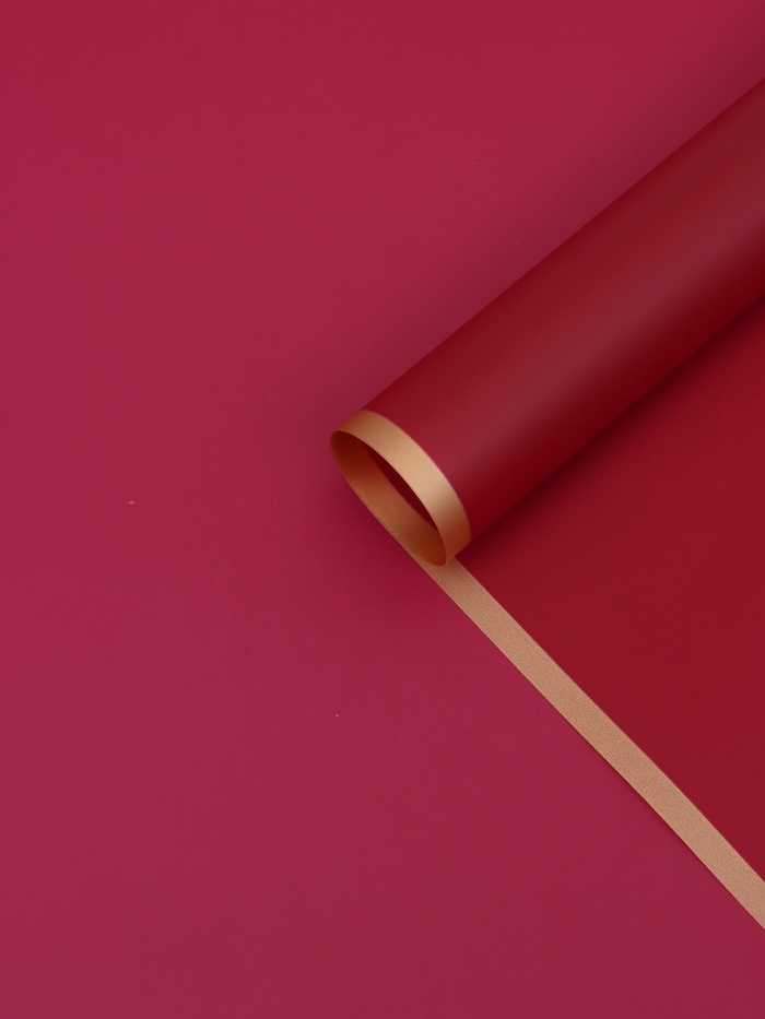 - Глубина основного цвета: Бордовый фон — это цвет утончённости и зрелой элегантности. Он отлично сочетается с розами, пионами, альстромериями и придаёт букету солидность. Эта пленка подходит для поздравлений, где важна не только романтика, но и чувство стиля.