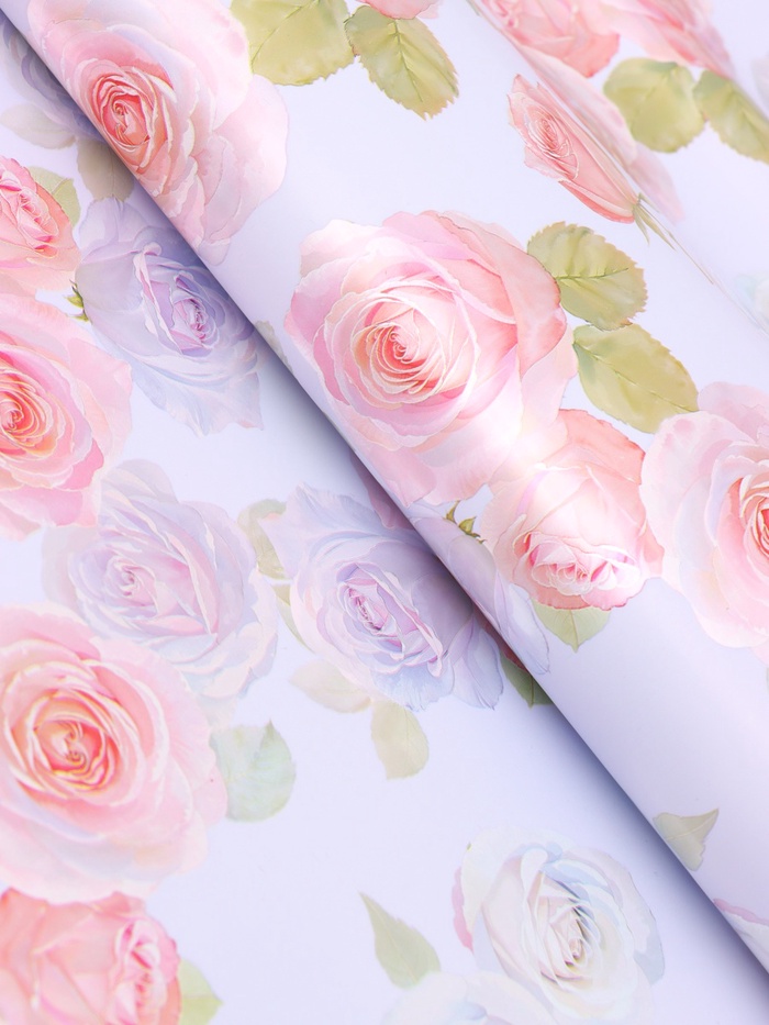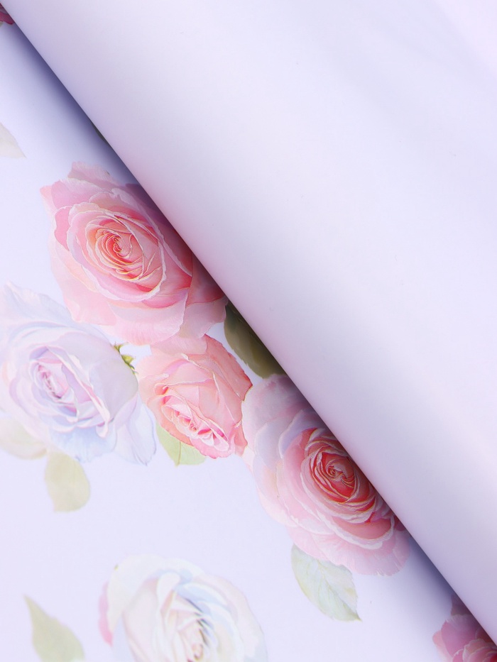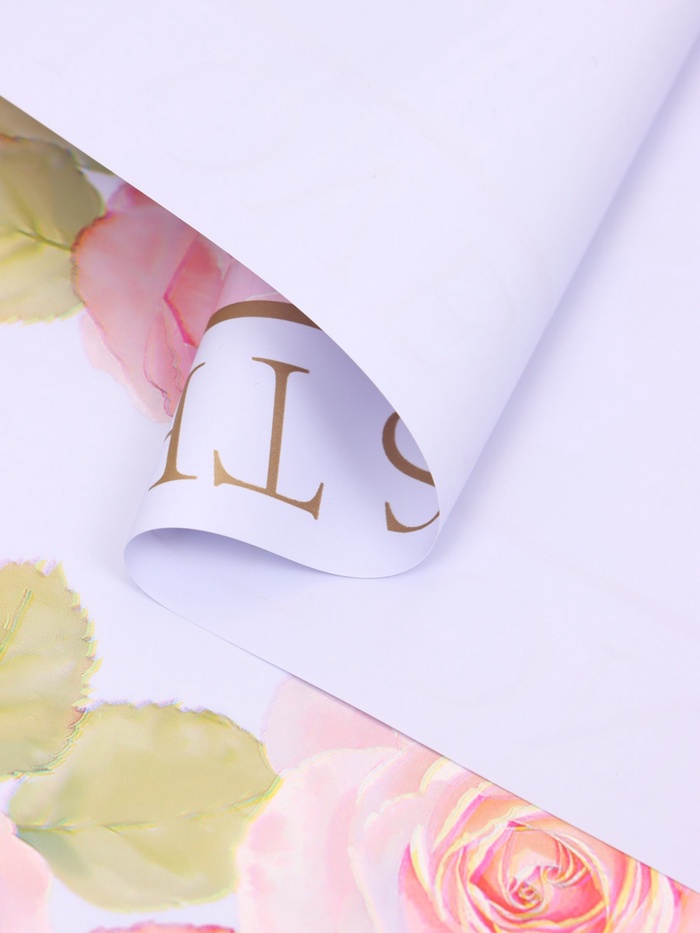 - Реалистичный цветочный принт: Рисунок с розами и элементами зелени нанесён детально, создавая эффект второго слоя или фона. Это придаёт упаковке живописность и делает её самостоятельным элементом декора, даже если букет собран из других цветов.