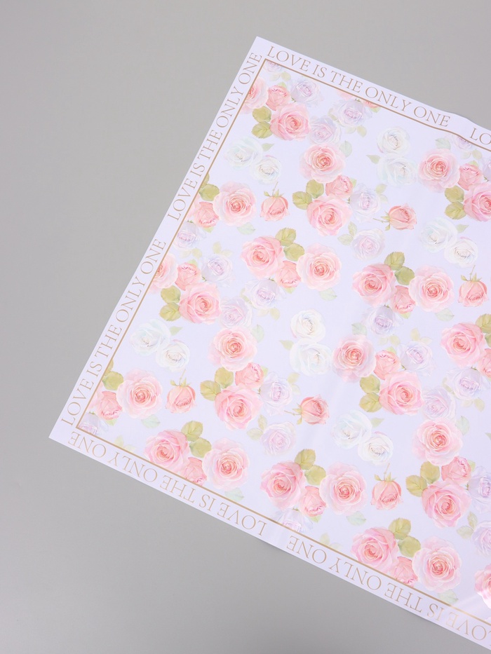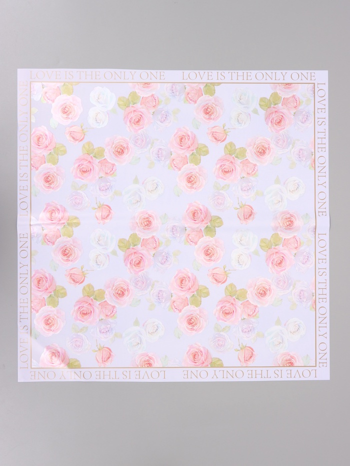 Цветы на цветах — двойная нежность! Флористическая пленка с принтом «Розы» в светло-фиолетовых тонах 57×57 см — это упаковка, усиливающая красоту букета. Реалистичное изображение бутонов и надпись создают многослойный, богатый образ, полный романтики.